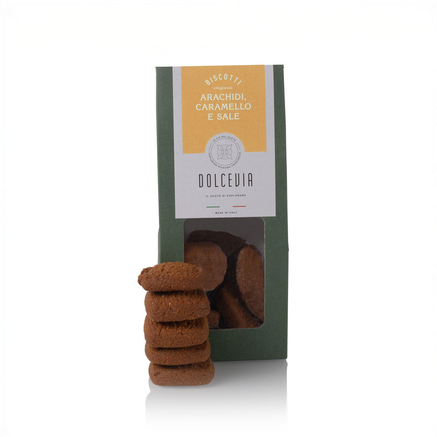 Biscotti artigianali al caramello salato e arachidi: dolcezza e croccantezza in un equilibrio irresistibile.